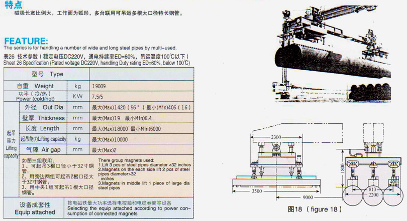 LMR-G1系列吊運大口徑長鋼管用矩形起重電磁鐵